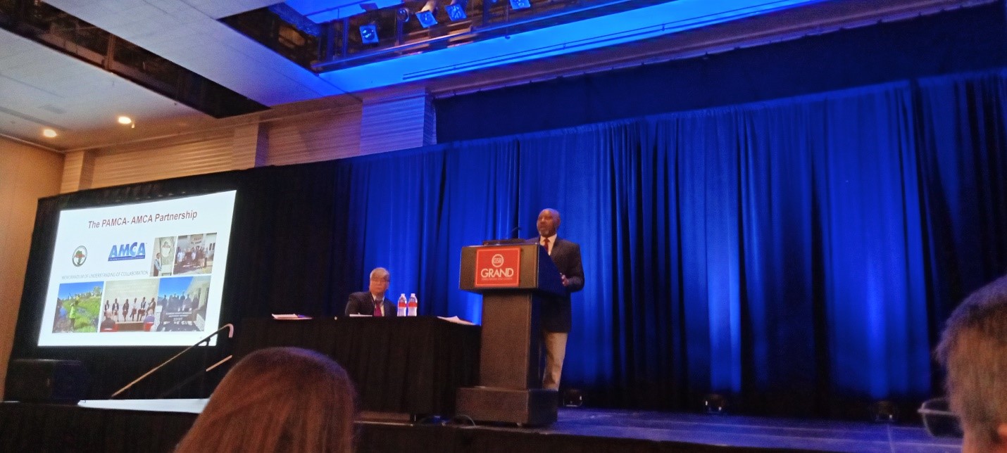 In this year’s AMCA Meeting, PAMCA was represented by its President, Prof. Charles Mbogo, and Dr. Elijah Juma (Program Manager). Prof. Charles took advantage of the podium provided to him by the meeting organizers to underscore the need for strong collaboration between the AMCA membership and their PAMCA compatriots. The AMCA has been in existence for over 89 years, he said. That means more than 89 years of accumulated knowledge of mosquito control which could be of great benefit to other parts of Africa and indeed younger organizations like PAMCA that have only recently been in existence. He further stated that given the varying and diverse context in Africa, the community of PAMCA membership has accumulated complimentary wealth of knowledge and skills that could be of benefit to the American mosquito control programs and as such, the two organizations should continue to strengthen the relationships that they are building, especially between the abatement districts and specific national control programs in the African continent. Prof. Mbogo took the opportunity during the meeting to formally invite the AMCA membership to the PAMCA Annual Conference & Exhibition in Addis Ababa, Ethiopia.